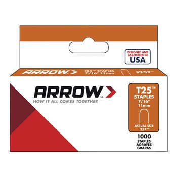 - ARROW, Staples, T25, 7/16" (11mm), Pkt 1000,