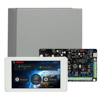 - BOSCH, Solution 3000, Alarm kit, Includes ICP-SOL3-P panel, IUI-SOL-TS5 5" Touch Screen Keypad & MW250 cabinet,