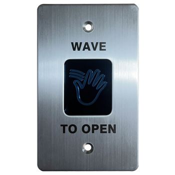 - ULTRA ACCESS, Non touch Exit Plate, Wall, Stainless Steel, Plate 115 x 70mm, Sensor 34mm Diameter, Dual colour LED, N/O and N/C contacts, IP67, 12-24V DC,