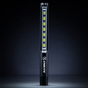- UNILITE, Pocket inspection LED light, 275 lumens, Black aluminium, Magnetic base, pocket clip, 154 x 22 x 15mm, 89g, 16 hour run time on low beam, 3 x AAA batteries (included).