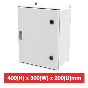 - ALLBRO, Hinged enclosure, SMC material, Grey, IP66 & IK10 rated, Flame retardant, Internal Hinges, 400(H) x 300(W) x 200(D)mm, Incl 2 x T- Lock locks & internal steel plate for mounting products.