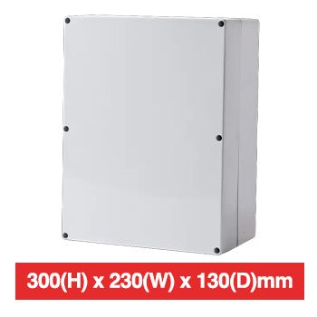 - ENLEC, Enclosure, Polycarbonate, Grey, Weather resistant, IP66 rated, 300(L) x 230(W) x 130(D)mm,