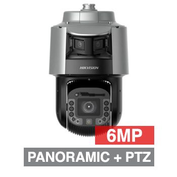 - HIKVISION, HD-IP TandemVu Outdoor PTZ camera, 190 degree Full colour, 500m IR, 48x Zoom (6.25 - 300mm lens), 6MP Panoramic, 8MP PTZ, 1/1.8" CMOS, 0.0005Lux (PTZ), H.265/+, IP67, IK10, 36V DC, Hi-POE,