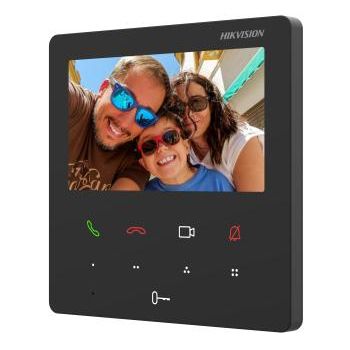 - HIKVISION, IP intercom room station, 4.3" IPS Touchscreen 480x272, Hands free, Touch buttons, Call tone mute with indicator, Black, 12V DC, Wi-Fi, POE.