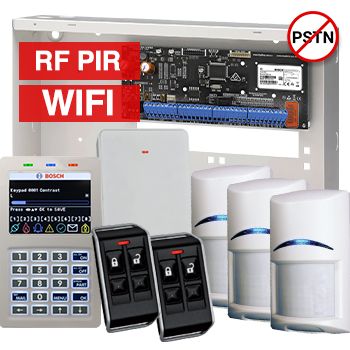 - BOSCH, Solution 6000, Alarm kit, Includes CC615PB IP panel, CP737B Wifi Prox LCD keypad, 3x RFPR-12 wireless PIR detectors, RFRC-STR2 Radion receiver, 2x RFKF-FB transmitters