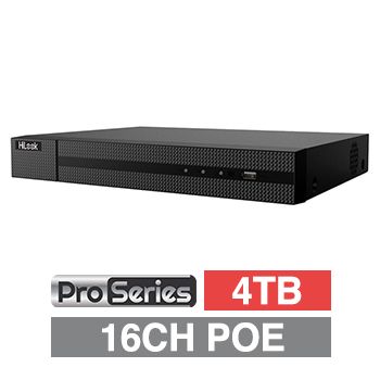 - HILOOK, PRO SERIES, HD-IP PoE NVR, 16 channel POE, 256Mbps bandwidth, 1x 4TB SATA HDD (up to 2x 16TB), VMD, USB/Network backup, Ethernet, 2x USB2.0, 1 Audio In/Out, HDMI/VGA (independent)